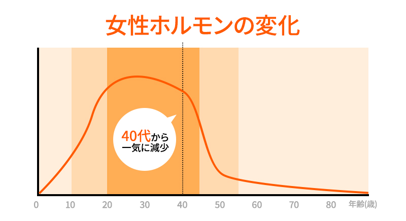 年齢を重ねるにつれて発生する女性特有のお悩み。 その原因は女性ホルモンの減少が影響しているんだそうです。