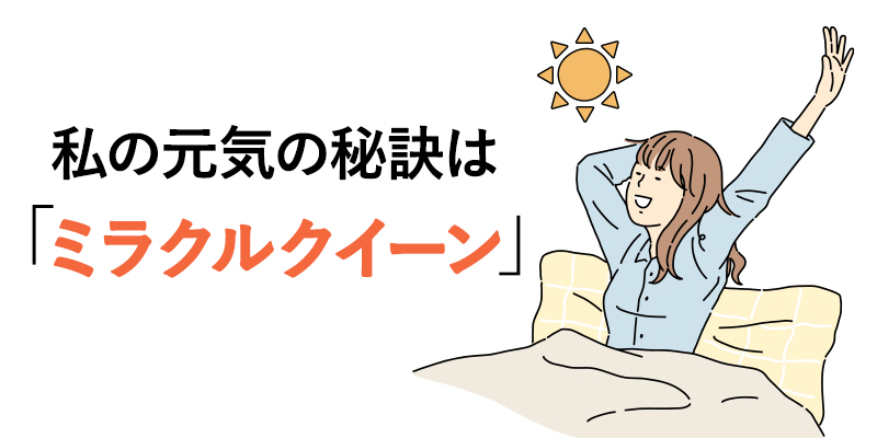 40代の⾃分には少し早いかな? と思いながら、ミラクルクイーンを定期購⼊しています。 飲み始めは分かりませんでしたが、こうやってしばらく飲み続けていると、季節の変わり⽬も気にならなくなっているのと同時に、忙しい⽇々もやり切ることができるようになり、アクティブに⽣活できるようになりました。 もちろん美容対策ができることは⾔うまでもありません。これからも私のお守りがわりとして引き続き飲んでいきたいなと思っています。